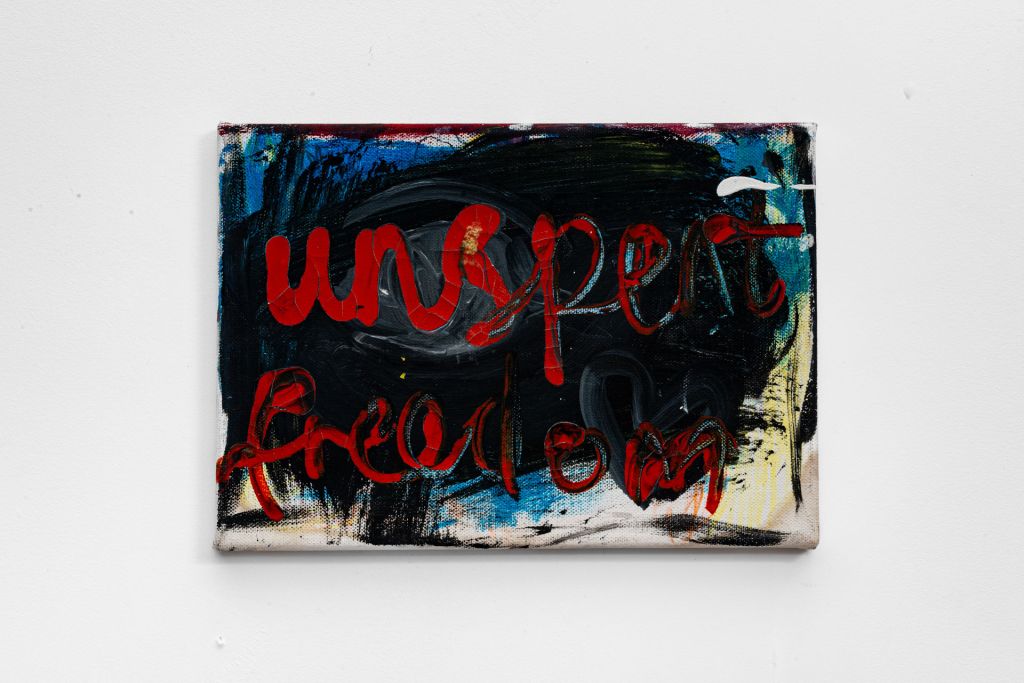 Alice Fraser’s paintings explore ideas of hysteric expression in an exhibitionist yet jarring manner, where desire is entangled within layers of bureaucracy. Akin to the role-playing dynamics in Dungeons and Dragons where pure fantasy meets the profane negotiation of rules, Fraser has characterised this impulse and reality as a ‘chaotic good’. Informed by Lacanian psychology, particularly Jacques Lacan’s notion that ‘there is no such thing as a relationship’ - his infamous statement that suggests humans never desire to have sex for the sake of sex and instead, the sexual impulse hides an ulterior hidden desire; for recognition, for social status, for transgression, for validation - Fraser's practice delves into a particular vulnerability and resistance to this idea. Her art is hyperbolic, avoidant and humorous, yet earnest, and often plays with language to expose its hierarchies by saying less and more at once.