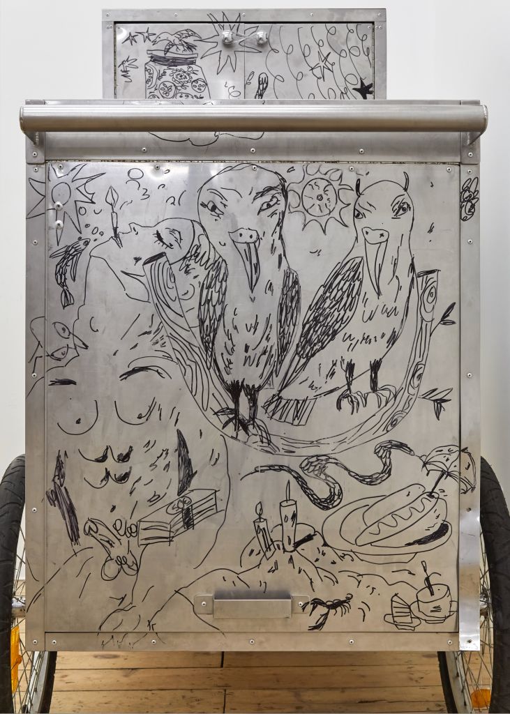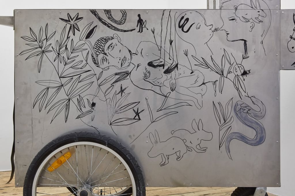Maria Metsalu gives TINA and its London audience a new iteration of Kultuur, an ongoing performance work that animates a dialogue with the sun. Kultuur presents an anthropomorphised wildflower as an object of spectacle, while at the same time illuminating and complexifying some universal paradoxes of existence; the sun as something that gives life and energy, but something that can burn right through it. Metsalu confronts audiences in such a way that also scorns this spectacle, and the performance offers a moment of reflection, for all involved, on participation and complicity – a collective assemblage of exchange, of ritual, of unexpected and unknowable participation. The performance begins in the street, where people witness the artist’s interactions with a ubiquitous element of urban life, the hotdog vendor. With a hypnotic candour, and with intensities varying between states of pleasure, indifference, suffering and hope, audiences are led, pied piper-like, to TINA. Here, the collective body of the audience orbit the sun – an environment collaboratively made by Metsalu and Boumjimar in the gallery space. Kultuur includes the collaboration of various other artists in its conception and production; a text written by Jaakko Pallasvuo, sound design by Artjom Astrov, outfits designed by Kris Lemsalu together with Lotte Jürjendal and CRUDACRUDA, and a range of artefacts designed and built by Nikola Knezevic and Bruno Lillemets. While Karim Boumjimar creates the food ...