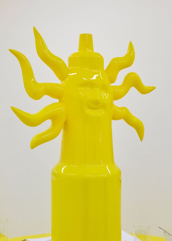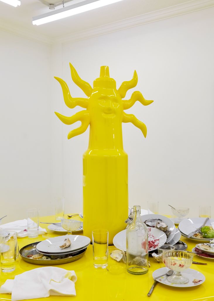 Maria Metsalu gives TINA and its London audience a new iteration of Kultuur, an ongoing performance work that animates a dialogue with the sun. Kultuur presents an anthropomorphised wildflower as an object of spectacle, while at the same time illuminating and complexifying some universal paradoxes of existence; the sun as something that gives life and energy, but something that can burn right through it. Metsalu confronts audiences in such a way that also scorns this spectacle, and the performance offers a moment of reflection, for all involved, on participation and complicity – a collective assemblage of exchange, of ritual, of unexpected and unknowable participation. The performance begins in the street, where people witness the artist’s interactions with a ubiquitous element of urban life, the hotdog vendor. With a hypnotic candour, and with intensities varying between states of pleasure, indifference, suffering and hope, audiences are led, pied piper-like, to TINA. Here, the collective body of the audience orbit the sun – an environment collaboratively made by Metsalu and Boumjimar in the gallery space. Kultuur includes the collaboration of various other artists in its conception and production; a text written by Jaakko Pallasvuo, sound design by Artjom Astrov, outfits designed by Kris Lemsalu together with Lotte Jürjendal and CRUDACRUDA, and a range of artefacts designed and built by Nikola Knezevic and Bruno Lillemets. While Karim Boumjimar creates the food ...