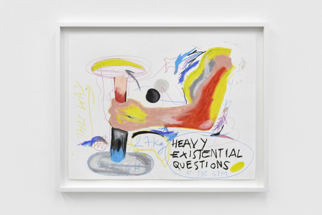 Lakhrissi’s process involves working on the floor or directly on the walls, incorporating text while allowing his body to become an integral part of the creative process. Yet, beyond its physicality, the ritualistic nature of his daily studio practice finds a parallel in the repetitive forms, motifs and actions within the works. This rhythm echoes Kathy Acker’s use of repetition, where breaking and remaking becomes an act of transformation, expressed in her 1992 essay, The Language of the Body. In this text, Acker theorises the impossibility of speech and text, to adequately describe or translate the ‘language’ of the body. The essay is about failure, repetition, rejection, and the self. Breaking oneself repetitively, repeatedly, and systematically, both as metaphor and as a constitutive reality in the damaging of muscle to encourage growth. She prefigures breath and counting as a communication of action. An internal attention on the functioning body that forms a communicative exterior, an expressive essence. In Lakh...