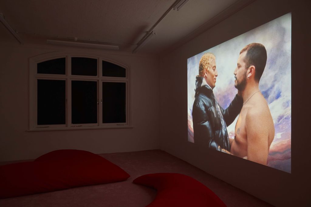 TINA is pleased to present Swallow, a solo exhibition by Tarek Lakhrissi, featuring a new body of work that includes painting, sculpture, drawing, and film. This exhibition marks a significant shift in Lakhrissi’s practice, embracing a more instinctive, embodied approach to image-making. Working with charcoal, pastels, and paint, Lakhrissi explores the raw potential of colour, the joy of play, and the freedom of uninhibited expression.